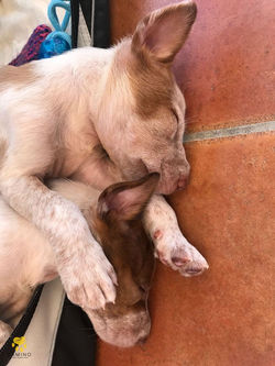 Malin, together with his litter, was found in a garbage container in Pedreguer, Spain. They were just 3 days old. Their eyes and ears were not yet open, burning from the heat and full of fleas and ticks - someone simply threw them away!